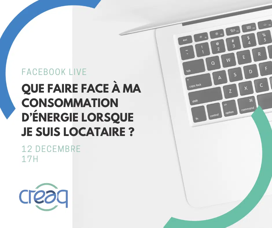 Retrouvez un expert du CREAQ le 12 décembre pour un Facebook Live sur la consommation d’énergie : en tant que locataire, quels sont mes droits et quel est mon rayon d’action pour réduire mes consommations d’énergie ?